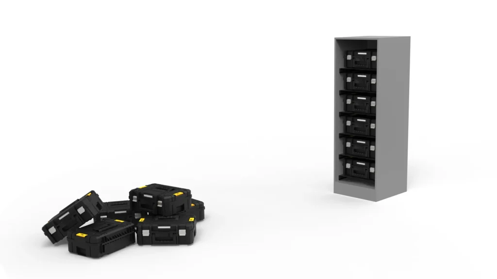 Zieh einfach die Schublade heraus und nimm die gewünschte Box – kein Umstapeln, kein Zeitverlust